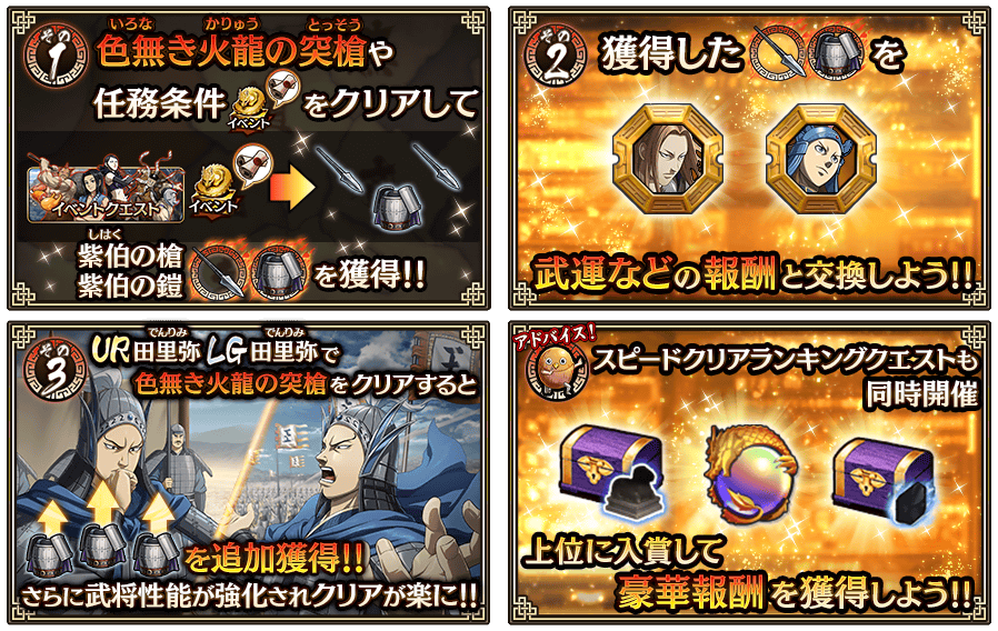 スマートフォン向けゲーム『キングダム 乱 -天下統一への道-』にて、新武将『UR田里弥』が登場し、イベント『魏火の鋭槍』が開催中。