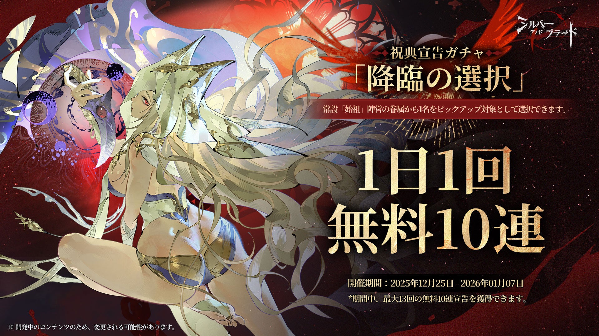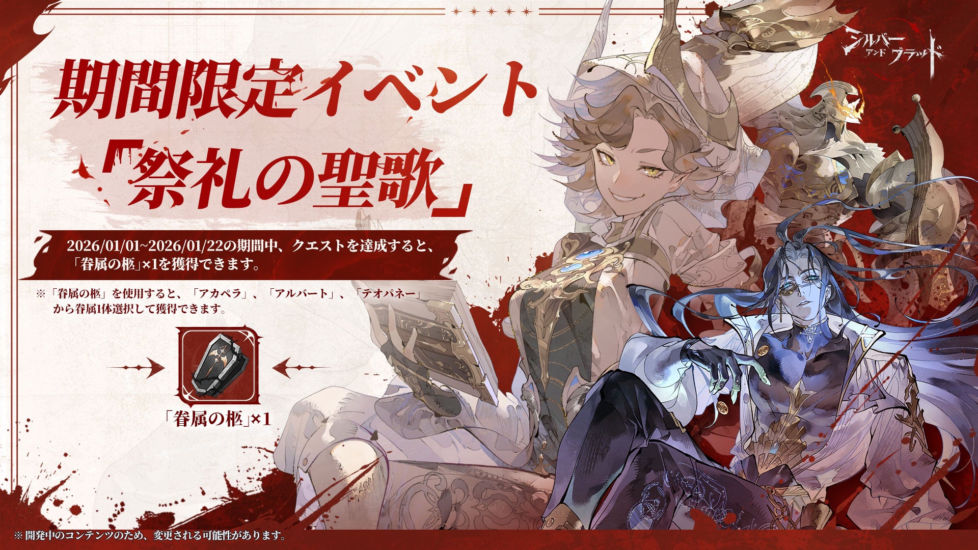 ハーフアニバーサリーを祝した特別イベント「祝祭の夜宴」や、最大130回無料ガチャ、眷属無料獲得イベント「祭礼の聖歌」なども開催中です。
