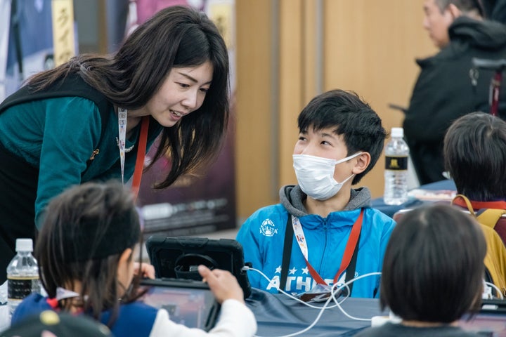 小学生麻雀教室では、プロ雀士による指導や対局を通じて、麻雀の楽しさを伝えた。