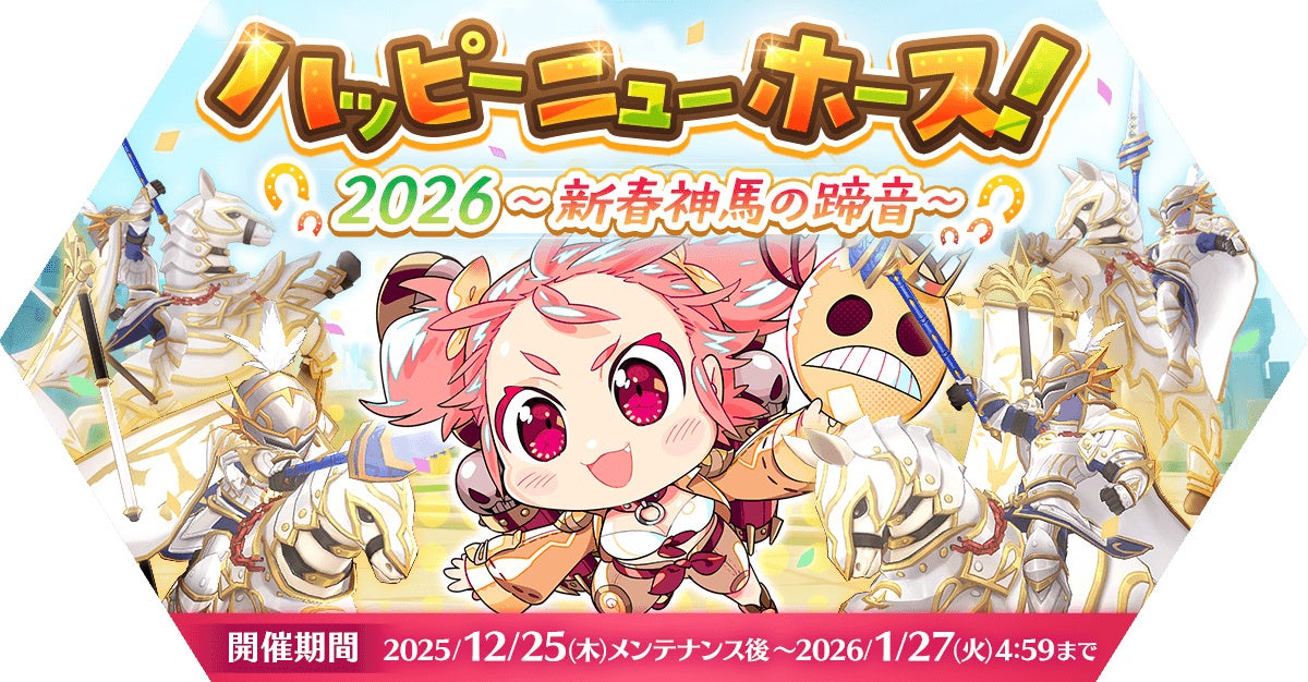 さらに、2026年の新春を祝う季節イベント「ハッピーニューホース!2026~新春神馬の蹄音~」が開催され、ログインボーナスや様々なイベントが実施される。