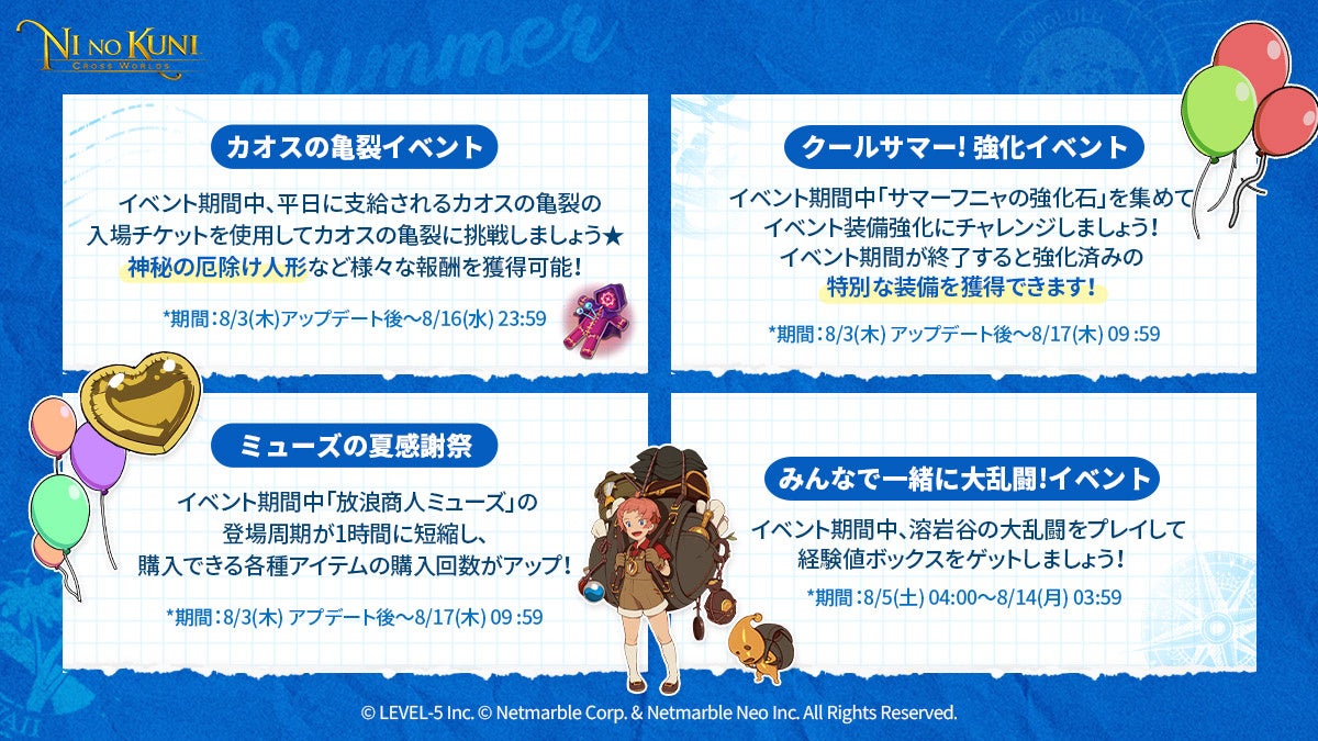 - 夏を彩る新コスチュームやキャラクター成長アイテム追加