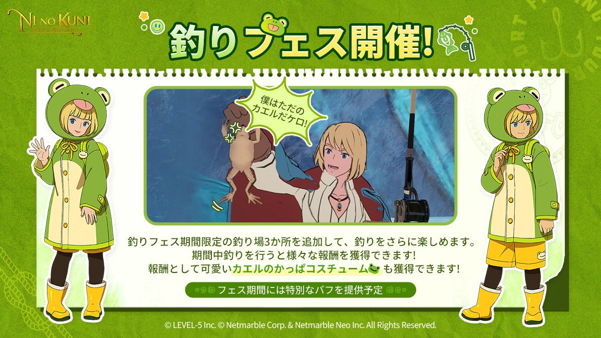 レベルファイブとタッグを組んだファンタジーアートRPG『二ノ国:Cross Worlds』(略称:ニノクロ)では、8月3日(木)から新イベント「釣りフェス」が開催され、夏を彩る新コスチュームなどが追加されました。