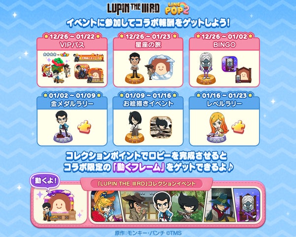 - 『LINE POP2』でTVアニメ『LUPIN THE ⅢRD』とのコラボが開催される。