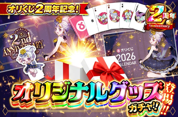 オンラインオリパ・ガチャ『オリくじ』が2025年12月26日にリリース2周年を迎え、記念キャンペーンを開催する。
