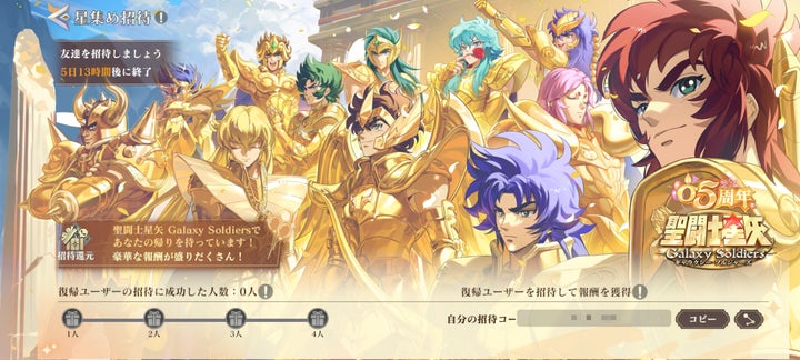 スマートフォン向けRPG『聖闘士星矢 Galaxy Soldiers』が0.5周年を記念し、様々なイベントを開催。