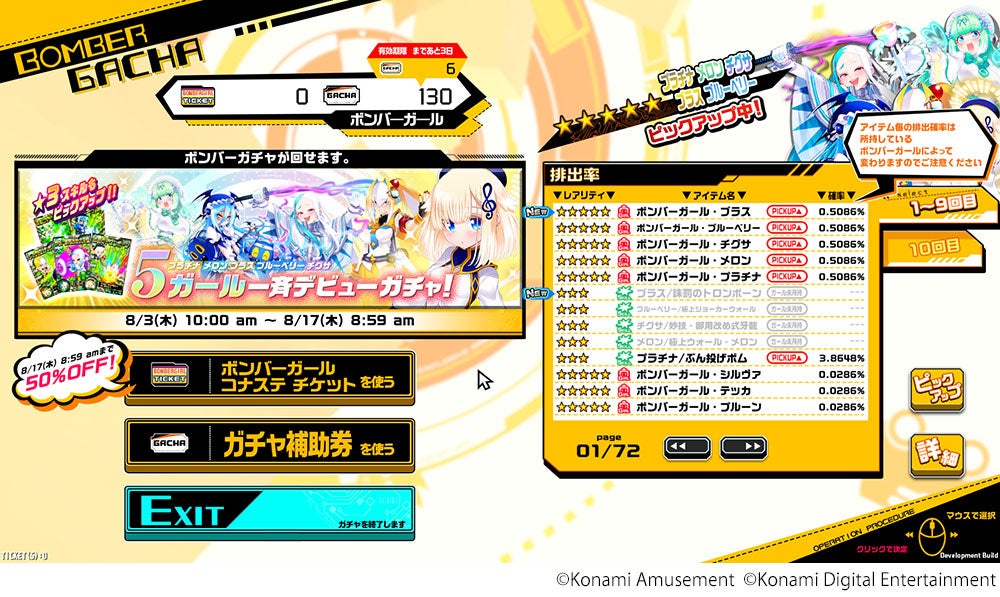 株式会社コナミアミューズメントは、PCでアーケードゲームが楽しめる「コナステ」にて、『ボンバーガール コナステ』が8月3日にアップデートしました。
