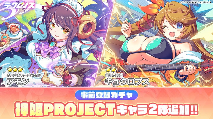 さらに、事前登録ガチャに『神姫PROJECT』の「アモン」と「キュクロプス」が追加され、神姫PROJECTキャラの出現率もアップしています。