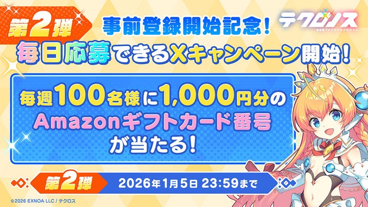 - 『テクロノス』事前登録者数5万人突破、ガチャチケット2枚配布決定。