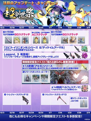 2026年1月1日(木)からは期間限定イベント「超・創世祭’25」の後半がスタートし、お正月仕様のセントラルシティや、ナビゲーター「シャンディー」が登場します。