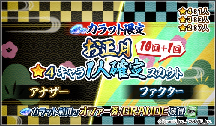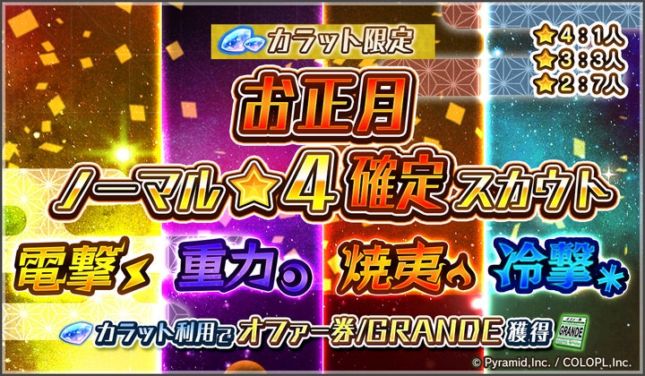 期間中は、無料スカウトや★4キャラ確定スカウト、新コスチュームの販売、新イベントなどが実施される。