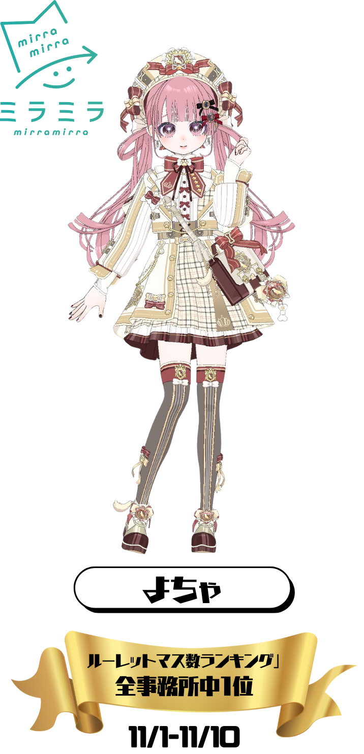 - ミラティブパートナー事務所「ミラミラ」所属ライバー「よちゃ」が「事務所配信者ルーレットマス数ランキング」で1位を獲得。