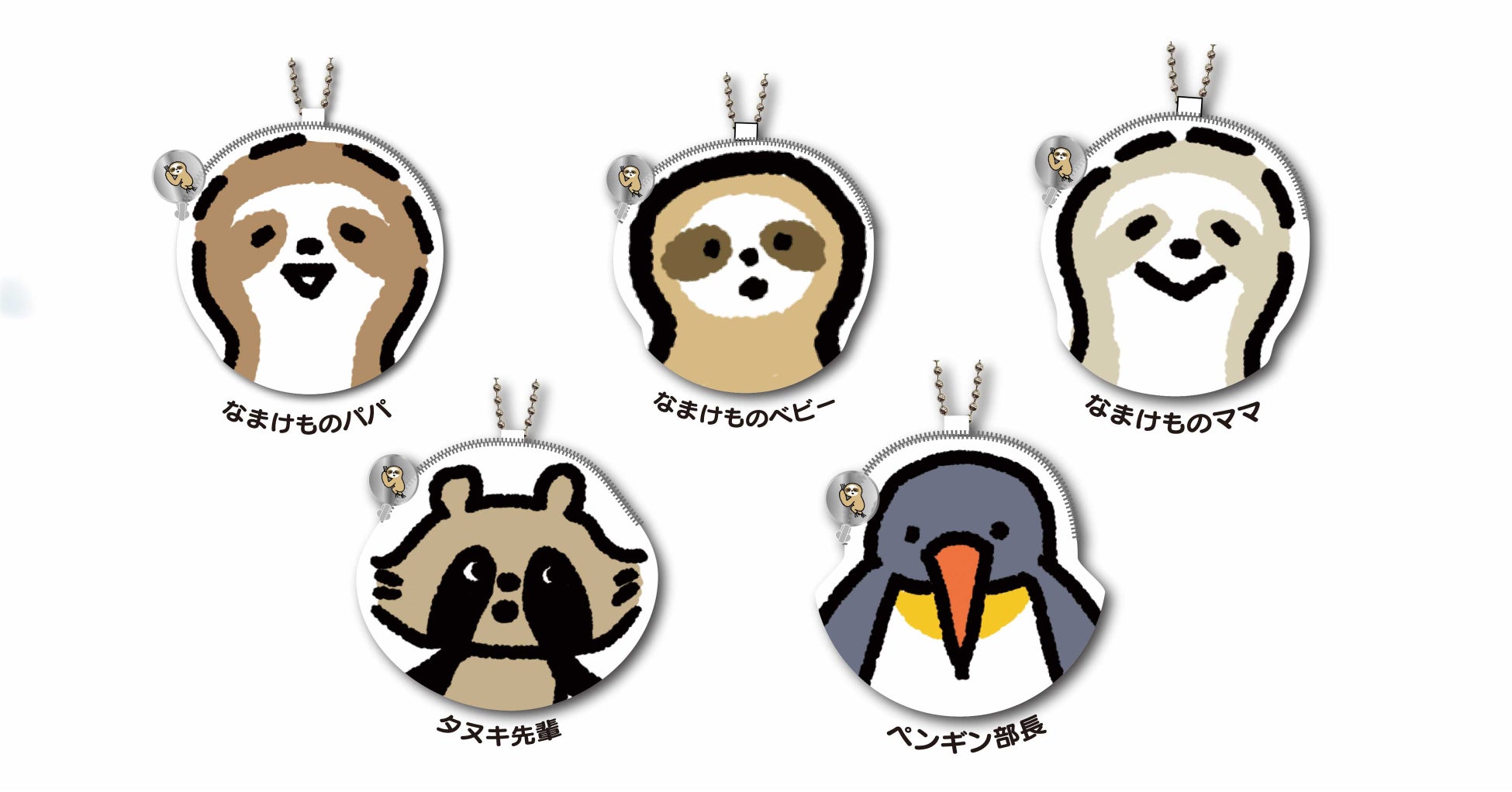 この商品は、漫画家・イラストレーターのむぴーさんが描くなまけものファミリーのキャラクターがポーチになったものです。