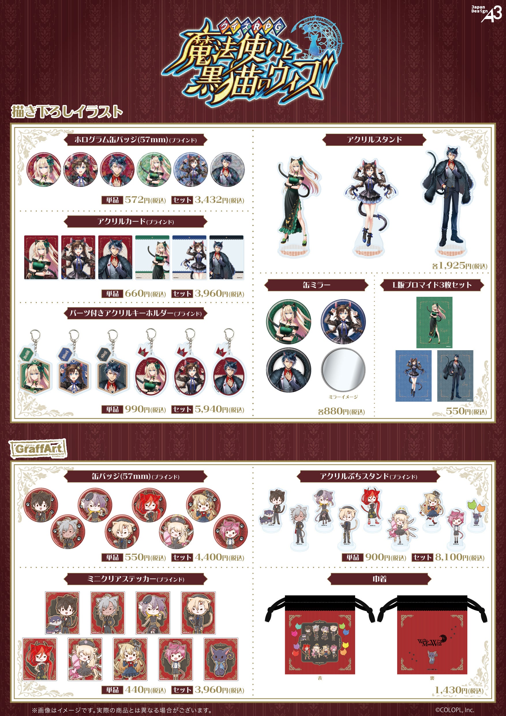 - 『白猫プロジェクト NEW WORLD’S』と『クイズRPG 魔法使いと黒猫のウィズ』の新作グッズが発売。