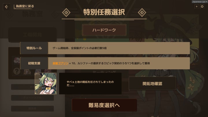 特別任務では、資源採取時間が5倍になる代わりに、サポートを受けながらプレイします。