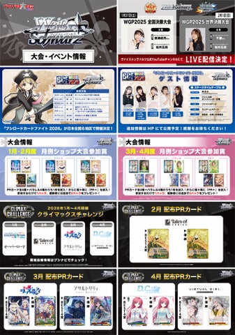 2026年のイベント情報として、WGP2025、BCF2026、月例ショップ大会、クライマックスチャレンジの開催が告知されました。