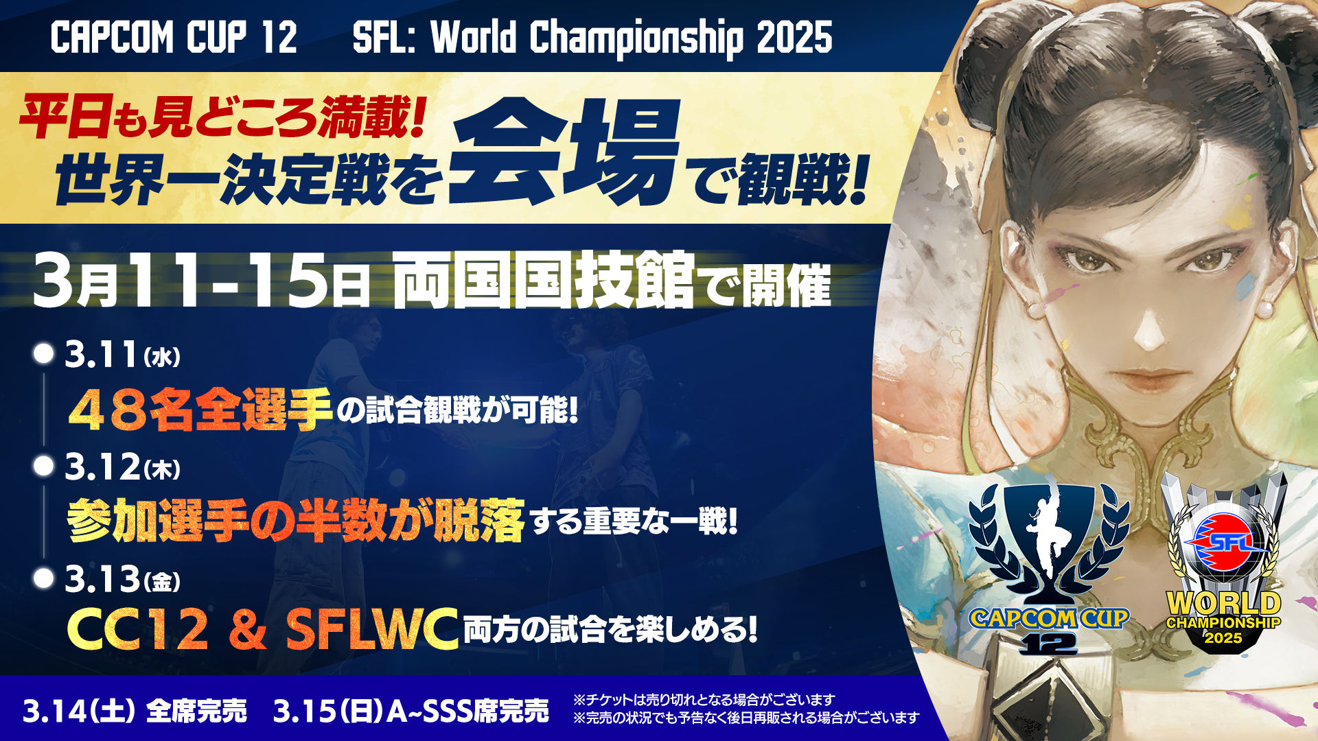 • 「CAPCOM CUP 12」と「ストリートファイターリーグ: ワールドチャンピオンシップ 2025」の会場観戦チケット発売中。