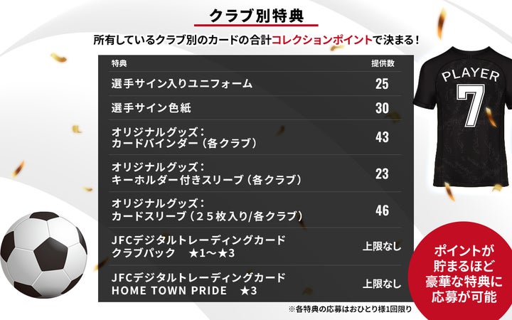 シリアル付きの希少なカードはリアルカードとして手元に届き、コレクションポイントでJリーグ観戦チケットやサイン入りグッズなどの特典に応募可能。