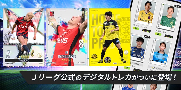 レアリティが設定されたデジタルカードを集め、実際のJリーグの試合と連動したゲームで遊べる。
