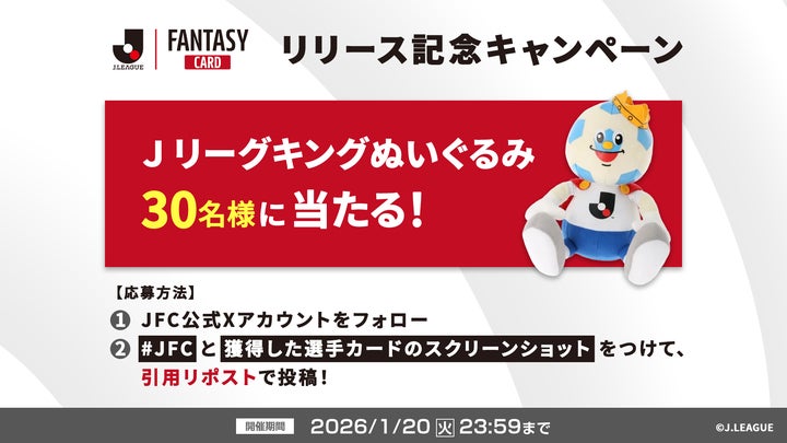 Jリーグ公式のデジタルトレーディングカードゲーム『J.LEAGUE FANTASY CARD』が2026年1月14日(水)に正式リリース。