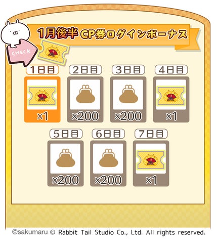- 旬の具材やCP券がもらえるログインボーナスも実施。