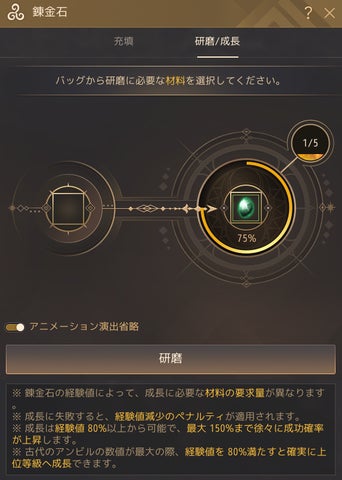 錬金石システムは、等級を上げやすくなるように改変され、失敗時のデメリットがなくなった。
