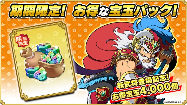 また、新武将登場を記念して、お得な宝玉パックも販売。
