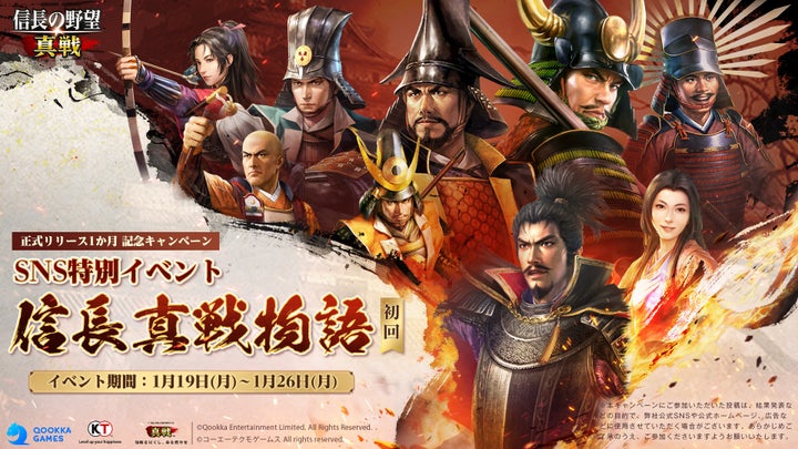 Qookka Gamesが開発し、コーエーテクモゲームスの『信長の野望・新生』の公式ライセンスを取得したスマホゲーム『信長の野望 真戦』が、リリース1か月を記念してキャンペーンを開催。