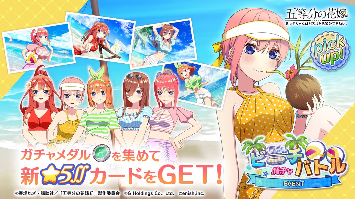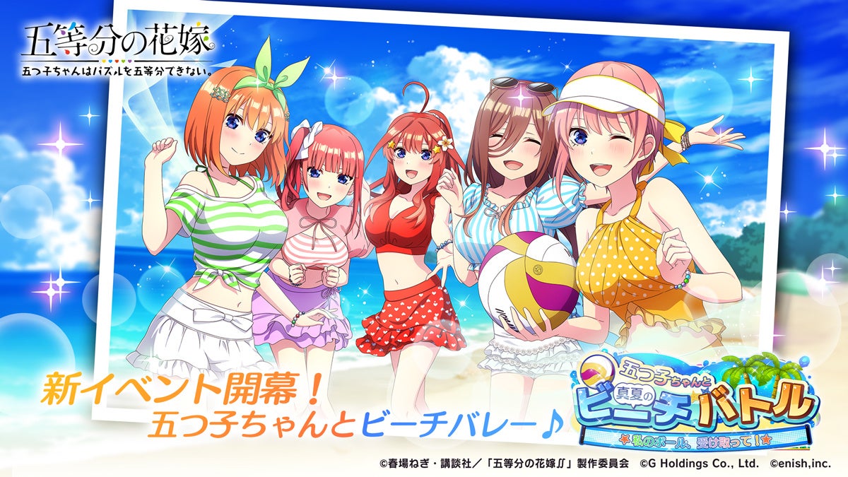 『五等分の花嫁 五つ子ちゃんはパズルを五等分できない。』新イベント「五つ子ちゃんと真夏のビーチバトル~私のボール、受け取って!~」&「ごとぱずサマーバケーションキャンペーン」開催!
