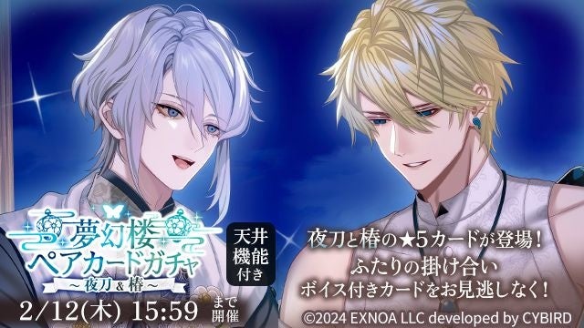 - 期間限定ガチャ「夢幻楼ペアカードガチャ 〜夜刀&椿〜」も開催、新規カードには掛け合いボイス付き。