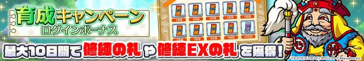 • 育成キャンペーンとして、ミッション追加、ドロップアップ、ログインボーナスを実施。