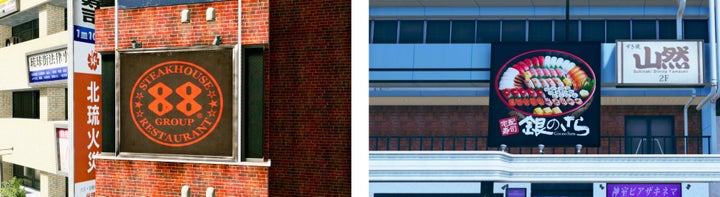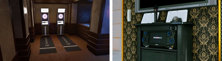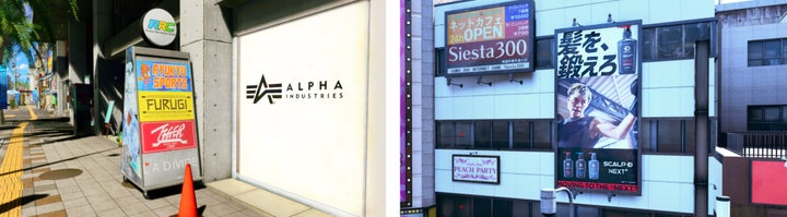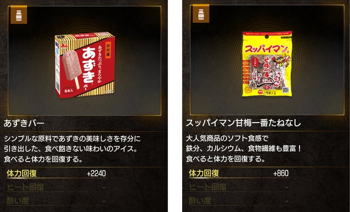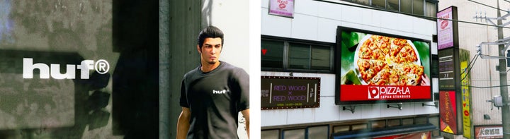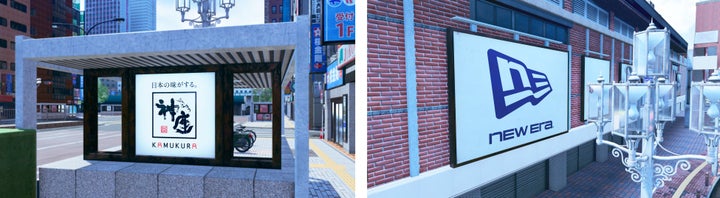 ゲーム内には、実在する企業の店舗や商品が登場し、食事やアイテム購入に利用できる。