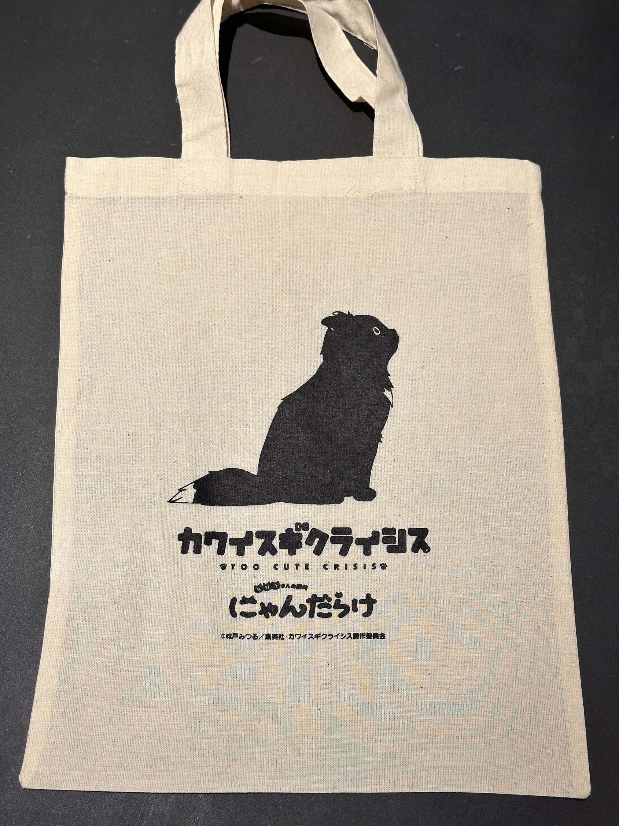 ☆「にゃんだらけ14」の各日先着500名様限定プレゼントのトートバッグは、にゃんだらけ×TVアニメ「カワイスギクライシス」のオリジナルコラボバッグ(縦33センチ×横22センチ)!