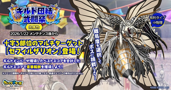 DMM GAMESが運営するRPG『クレイヴ・サーガ 神絆の導師』にて、ギルドメンバーとボスに挑む「ギルド団結武闘祭」が開催。