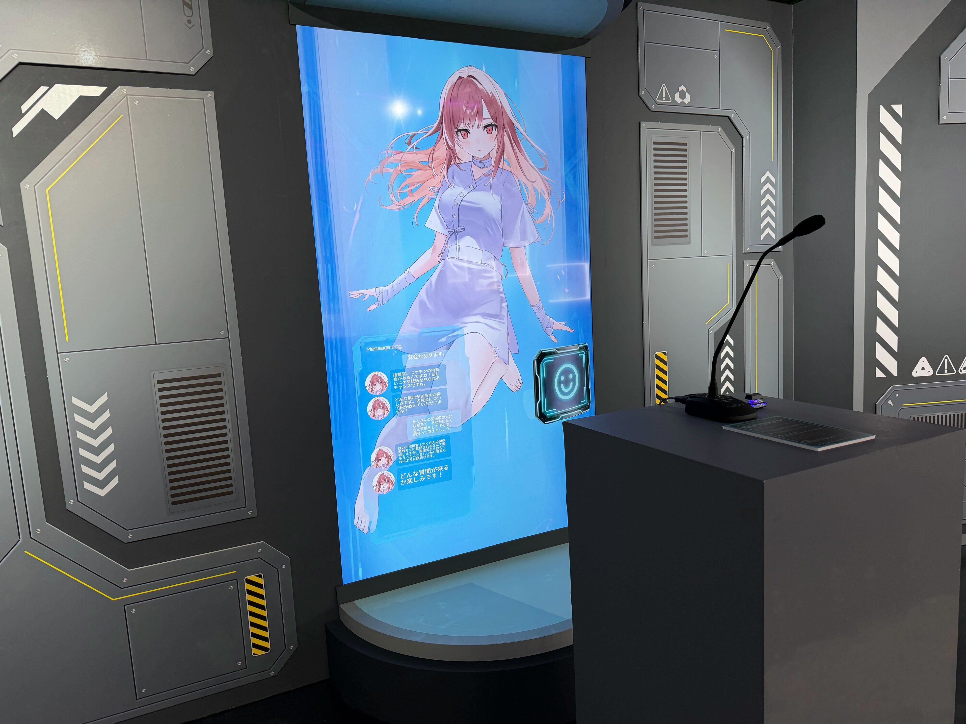 - 『勝利の女神:NIKKE』の世界観を基にした、開発中のニケと会話できる展示。