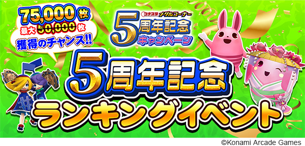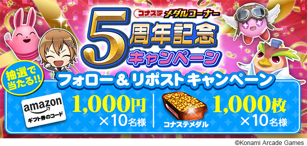 株式会社コナミアーケードゲームスは、PCやスマートフォンでアーケードゲームが楽しめる『コナステ メダルコーナー』の5周年記念キャンペーンを開始しました。