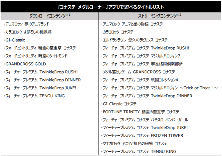 この機会に『コナステ メダルコーナー』アプリをダウンロードし、メダルゲームを楽しめます。
