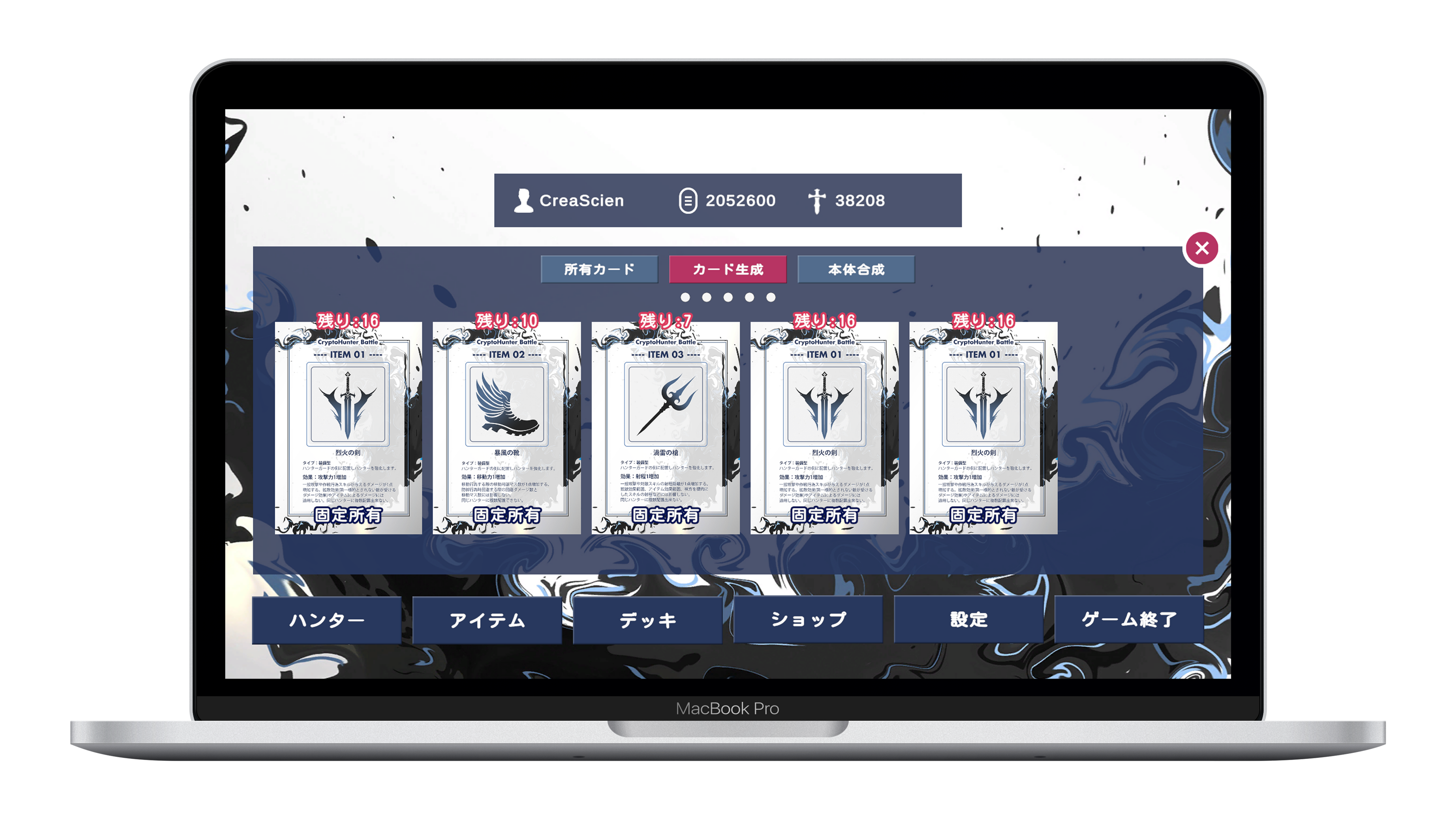 カードや本体は消耗品で、ゲーム内での獲得やNFTとしての取引が可能。
