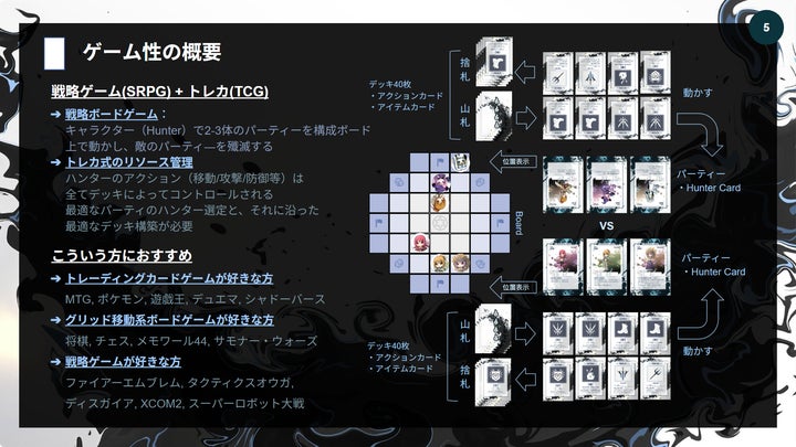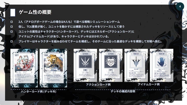 CryptoHunterはTCGとタクティクスを融合したカードゲームで、デジタル版ではユーザーデータベースやエコシステムを搭載。