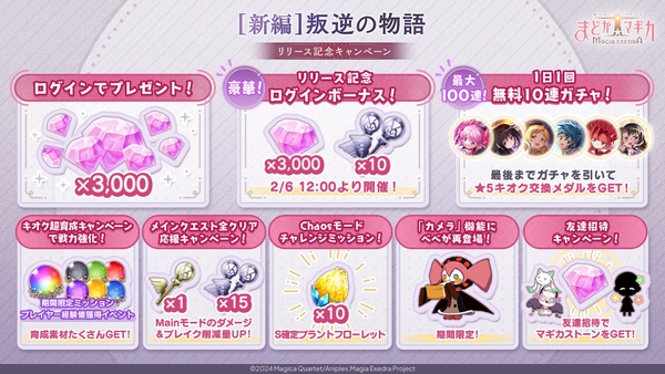初回ログインでマギカストーン3,000個がもらえるなど、豪華なキャンペーンが実施される。