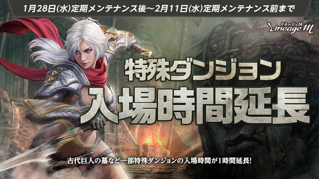 エヌ・シー・ジャパン株式会社は、スマートフォンMMORPG『リネージュM』において、2026年1月28日(水)に最上位ダンジョン「魔族の地」のリニューアルを実施する。