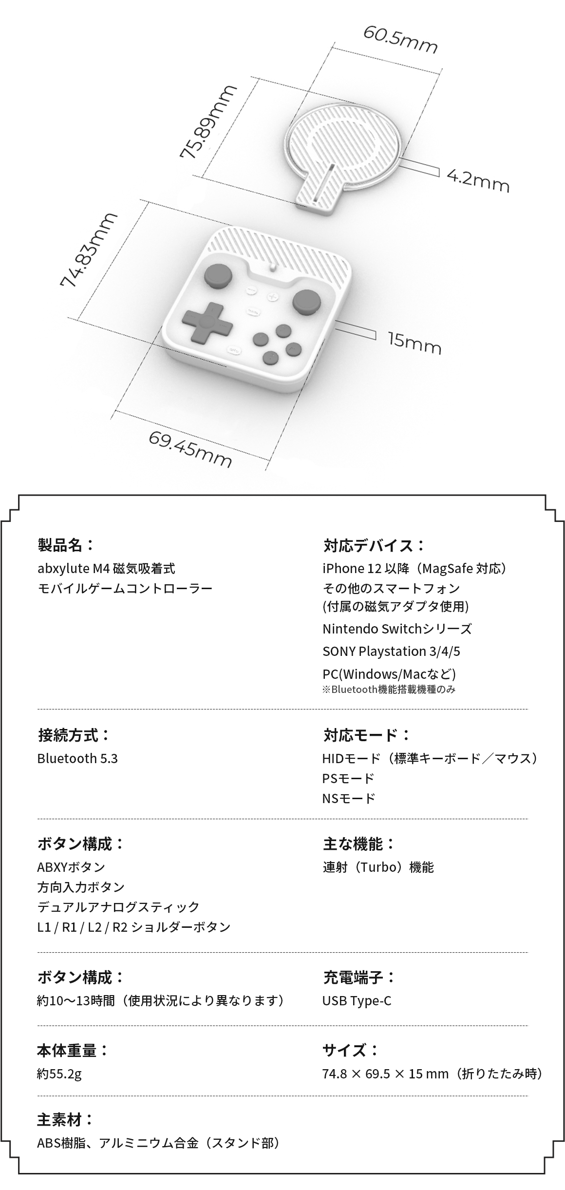 - 56gの軽量マグネット式コントローラー「abxylute M4」が登場。