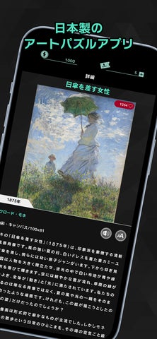 • モネ、ゴッホなどの名画をパズル形式で完成させ、作品の背景にある物語を体験できる。