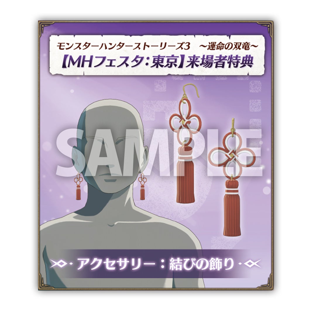 さらに、来場者特典として『モンスターハンターストーリーズ3 ~運命の双竜~』のゲーム内で使用できる追加アクセサリーがプレゼントされます。