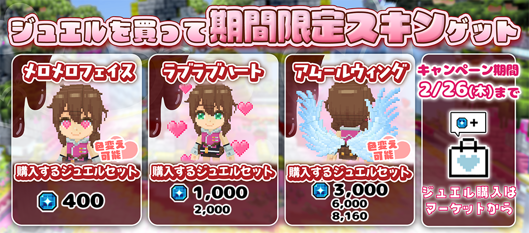 また、バレンタイン限定スキン「スイートキューピッド衣装」と「メルティキューピッド衣装」が販売され、カスタマイズも可能。