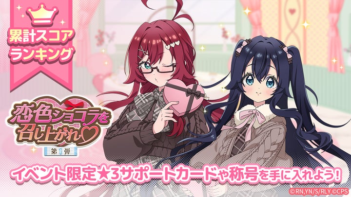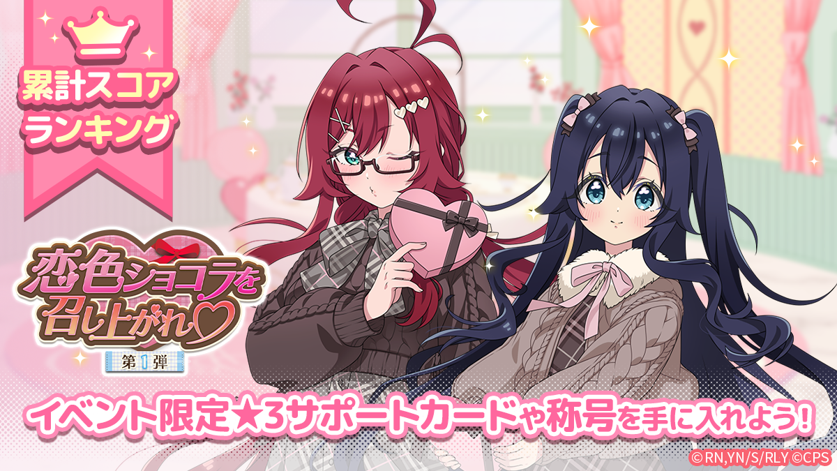 2月2日(月)からはイベント「恋色ショコラを召し上がれ♡ 第1弾」も開催され、ピックアップガチャチケットや限定★3サポートカードが入手可能。