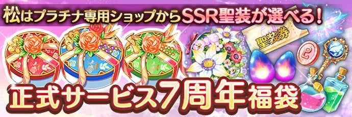 - 最大250回無料の『シロ召喚』や、SSR聖装が選べる『旅立のログインボーナス』を実施。