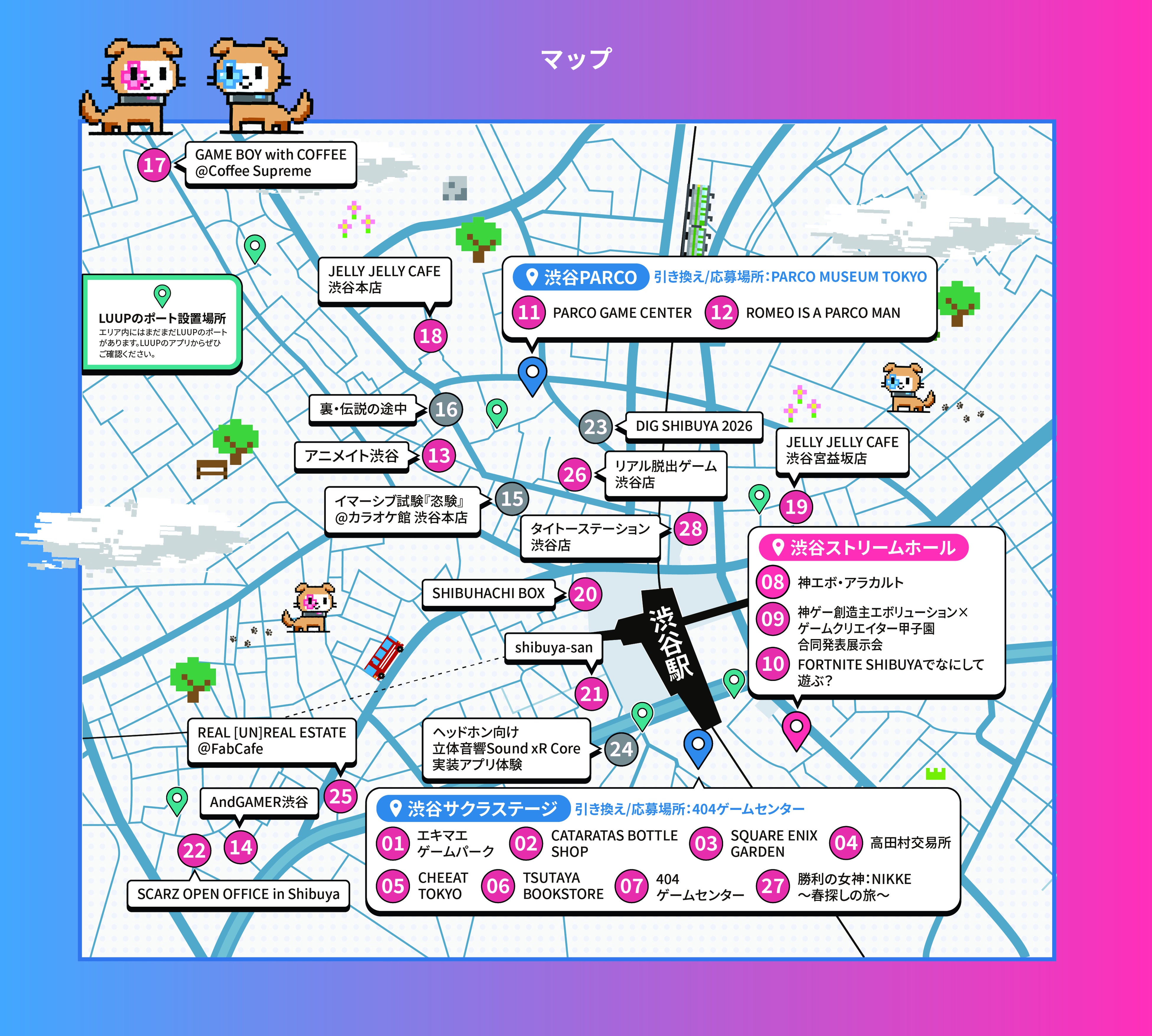 28拠点が参加し、スタンプラリーやトークイベント、PARCO GAME CENTERの開催など、様々な企画が用意されています。
