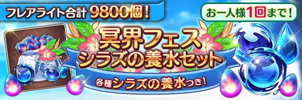 さらに、特別ミッションクリアやログインボーナスで最大6000個のフレアライトが獲得できる『冥界フェス開幕キャンペーン』も同時に開催されています。