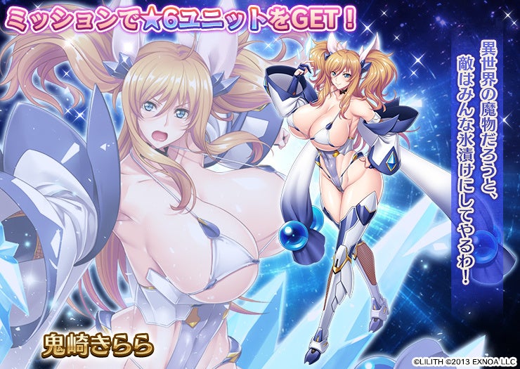 期間中は『対魔忍RPG』のキャラクターが召喚やコラボミッションに登場し、特定の条件を満たすとレアリティブラックの「鬼崎きらら」が手に入ります。