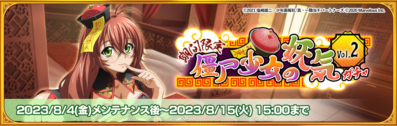 株式会社マーベラスは、人気シリーズ「一騎当千」の新作ゲームアプリ『一騎当千エクストラバースト』において、シナリオイベント「婀娜やか ラブリーキョンシー」後半が2023年8月4日から開始されました。